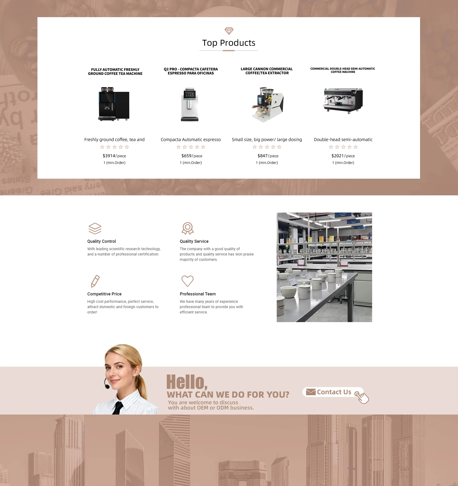 Prodotti principali: Tè, caffè, bevande materie prime, attrezzature per caffè e tè, attrezzature da cucina per il catering